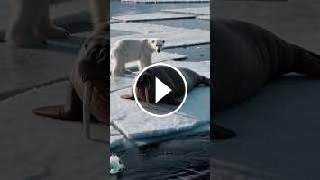 Polar Bear Curiously Approaches a Walrus on Floating Ice | Rare Arctic Wildlife Moment.