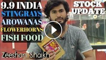 in this video Zeeshan bhai has shown us latest stock of arowana, stingray and flowerhorn at 9.9 india.