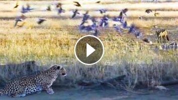 In this unexpected moment, a leopard catches a jackal that is busy hunting a flock of doves! This unbelievable sighting unravelled in the Kgalagadi Transfrontier Park.