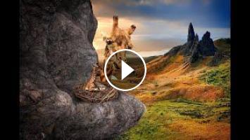 Giraffe Wolf Down Tree Large Neck Green Stains