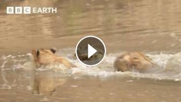 With a stream blocking the path of this lion family, they know that deep waters can be very dangerous. Will they be able to make the crossing unscathed?