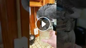 A more average Apollo interaction. He really loves the glass jars, especially the big ones. #birds #parrot #africangrey #cute #funny #talkingparrot #a...