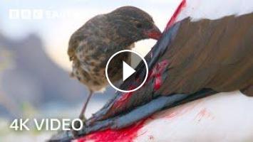 On the remote Galapagos Islands, food can be hard to come by. These finches are not strong fliers, so they have found an unusual diet closer to home. Their source? Seabirds called 'boobies'.