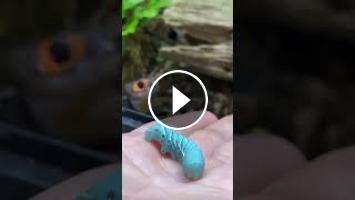 How to train your dragon ✨????. Hand-feeding a horn worm caterpillar to one of my red-eyed crocodile skinks (Tribolonotus gracilis). Her name is Sappy...