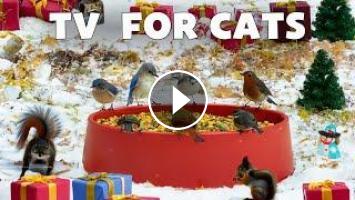 Birds Video for Cats to Watch Sparrows Fly Around the Happy Snowman & Relaxing Bird Songs