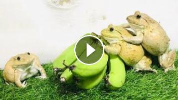 funny family frog/ funny frog protect banana , cute frog...