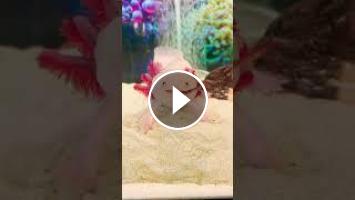 Feeding Axolotl Pinky walking out of her cave for her lunch. ????❤️????#axolotl #feeding