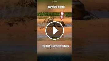 Impressive moment as the jaguar catches the crocodile. #jaguar #crocodile #animals...