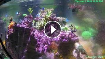 Live view of 200 gallon saltwater aquarium. Lights on 10AM EST, Lights off 10PM EST. Feeding at 11AM and 5PM EST.