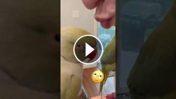 Beaker gets a nibble! #babyanimals #talkingbird #talkingparrot #funnyanimals #family #parrot #birds
