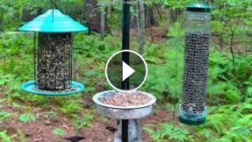 4K Bird feeder and squirrel feeder live cam set near a Massachusetts wetland. This 4k live birdfeeder attracts a variety of wildlife including squirrels, chipmunks, and birds including Red-Winged Blackbirds, Chickadees, Cardinals, Blue Jays, Grackles, Doves, Woodpeckers, and more. A great birdfeeder for birdwatching and birdwatchers, wildlife watchers, or even Cat TV! This is a good livestream for wildlife and bird watchers to leave on in the background while you work or play. Great for watching birds and work or home. Have fun and get things done while you watch birds.