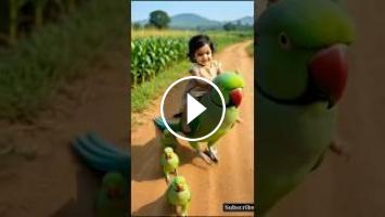 little girl and parrots ???? heart-touching story #ai #baby #parrotstory #trending...