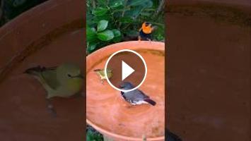 Zebra Finch Family Bathing together outdoor #birds #finch #finches #bird