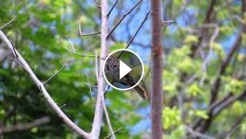 Le bruant chanteur est une espèce que j'aime beaucoup. Son chant est magnifique et son comportement très amusant à observer, car il est très territorial et il ne tolère pas bien les autres espèces d'oiseaux près de lui. Il se déplace très vite au sol. Il a une posture droite comme un soldat.