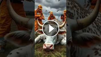 Bees attack on a hungry bull saved by rescuers #humanity #animals #cow #honeycomb #beesattack