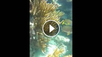 Contrasting views of the reef from the surface, and below the surface. With coral....