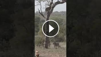 leopard fell from a tree directly onto a hyena #wildlife #animals #youtubeshorts #funny #leopard