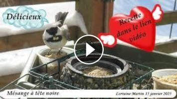 Voilà un 9 minutes avec les Mésanges à tête noire, Sittelle à poitrine rousse et Mésangeais du Canada le 15 janvier 2024.