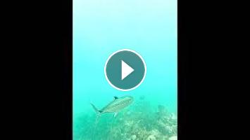 A school of French Grunts, an Atlantic Bonito, and a school of Striped Fusilier #coralreeffish