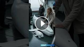Sailor Rescues Mother Beluga Whale and Newborn Calf on Ship Deck