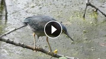 Les hérons verts restent à proximité de l'eau où ils attendent en embuscade leurs proies. Ils sont capable de rester longtemps strictement immobiles, parfois dans des positions bizarres.