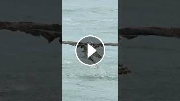 Osprey grabs huge fish from the ocean and struggles getting out. #bird #wildlife #birdsofprey