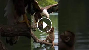 monkey vs eagle, baby monkey playing, eagle in the wild, shocking animal encounter, jungle wildlife, fearless baby monkey, rare wildlife interaction, nature’s most intense moments, daring animal play, unexpected animal friendship, jungle survival, eagle watching monkey, high-stakes wildlife moment, playful monkey behavior, real-life animal showdown, monkey swinging on tree, eagle fluttering wings, close animal interaction, tree over water, wild animal instincts, amazing nature encounter, rare jungle moment, predator vs prey moment, unbelievable animal encounter, fearless monkey tricks, eagle reaction to monkey, intense wildlife interaction, shocking jungle fight