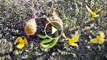 Watch these birds desperately attack a boomslang snake that is invading their nests.