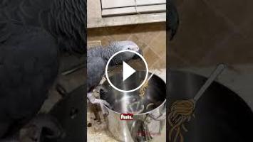 Parrot in a pot eating pasta! #pastalover #pastapot #birdvideos #einsteinparrot #parrots #shorts