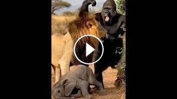 #GorillaRescue #ElephantCalf #LionAttack #WildlifeShorts #AnimalRescue #GorillaVsLion #NatureDocumentary #EpicAnimalMoments #WildlifeBattle #AnimalShowdowns