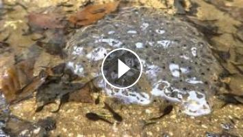 Oeufs d'amphibiens dans une flaque d'eau