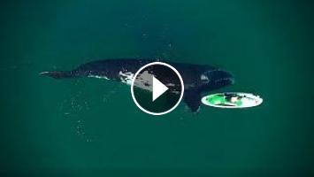 A drone captured the incredible moment a whale pushed a paddleboard with its fin.