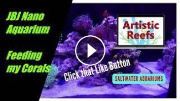 Feeding Corals in my JBJ Nano Reef Aquarium using Red Sea Reef Energy Plus, also known as AB+. Great for target feeding your corals for better coloration and the overall health of your corals.