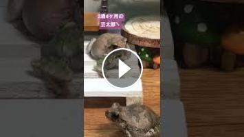 幼体ベビーカエルのごまちゃんが、自分の腕の大きさくらいあるでっかい昆虫を食べました~o(^▽^)o