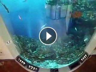 The crystal fish tower in the Aquarium Video sea water marine deep sea