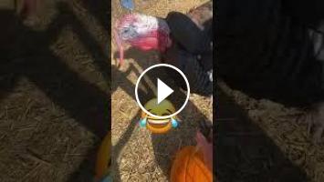 Trying to carve a pumpkin with my mean pet turkey, Tom.
