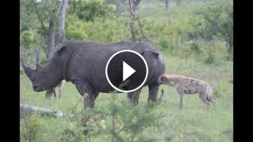It would be very difficult for a single hyena to kill a rhino given how hard their skin is.