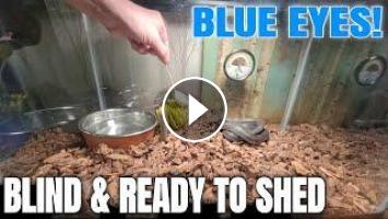 Blue grey cloudy eyes mean snake is getting ready to shed. Nearly blind with loss of appetite and just wants to chill in his cave!! North American Black Rat Snake Camera Live.