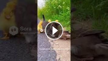 This kitten is taking its responsibilities very seriously! ???? Watch as Nurse Kitty (Ponyo) carefully inspects a little pigeon on the path, all while his entourage of adorable ducklings provides moral support (and looks very confused). This unexpected moment of cross-species curiosity and care is the sweetest thing you'll see all day. We hope the little bird flies away safe and sound! ????