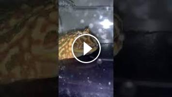Baby Pacman Frog Seabass still practicing his ambush tactics trying to eat a Dubia Roach.