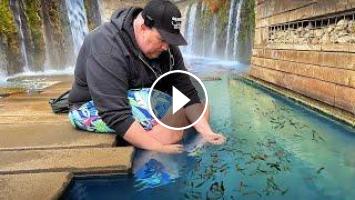 Chris Lukhup (the Shrimp King) took Cory to catch wild aquarium fish at an artificial "hot spring" in Germany. Many of these species are actually invasive tropical fishes that are able to live here yearround at 29°C. They found guppies, Endler's livebearers, mollies, convict cichlids, Malawi cichlids (Pseudotropheus socolofi or powder blue cichlid), guppy grass, ducks, red jewel cichlids (Hemichromis genus), ghost shrimp, self-cloning crayfish, and goldfish. This location often attracts local children who come to feed and catch the fish for fun. However, the water is tinted bluish-gray, perhaps from dissolved lime, so the fish do not fare well when taken home to normal tap water. It was such a unique experience getting to soak in the warm water, feed them by hand, and feel them nibbling on our legs.