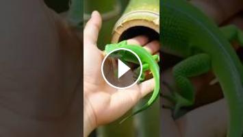 This beautiful green lizard is found inside the bamboo hole, this lizard have been living in the bamboo as its home to protect himself from raining, sunshine or some other animals????✨