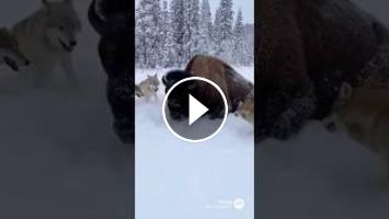 bison fight, wolf pack attack, bison vs wolves snow, wildlife documentary, nature, survival, animal defense, winter animals, american buffalo, grey wolf hunt, wild animals, predator vs prey, yellowstone national park, extreme nature, epic fight, bison charge.