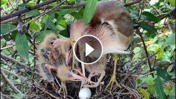 Baby Birds Forces Mother To Spit Out Food,
