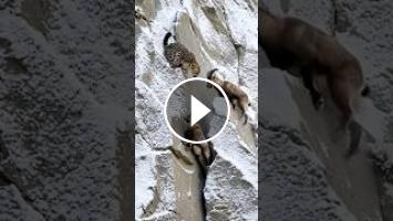 #SnowLeopard #MountainSheep #IcyCliff #WildlifeDrama #MountainWildlife #PredatorVsPrey #NatureMoments #FrozenLandscape