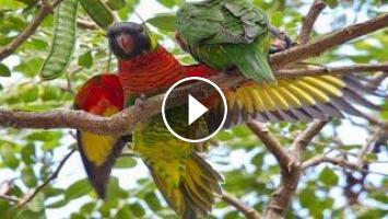 Coconut lorikeets are monogamous birds, choosing only one partner for their whole life. They are diurnal birds living in very large bands. In the evening, they join their fellows in a dormitory tree. These birds may breed throughout most of year, depending on the region. Usually they breed in the spring, from July to December. They usually raise one brood a year, sometimes two.