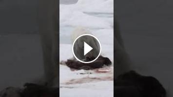 A polar bear ???? attack on a seal ???? to catch him but seal escape in first time.then polar bear ?