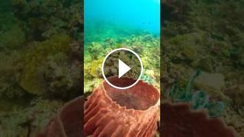 Barrel sponges are filter feeders found in tropical coral reefs, known for their iconic vase shape designed to maximize water flow. Though they look plant-like, barrel sponges are actually simple multicellular animals. They consume organic matter for energy, filtering bacteria and nutrients while supporting small marine life like shrimp and crabs. These ancient animals can live over 2,000 years, and based on its size, this one is estimated to be around 30 to 60 years old. Barrel sponges regenerate when damaged and play a vital role in recycling nutrients, making them essential contributors to reef ecosystems.