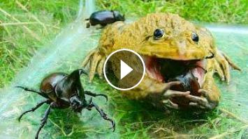How can my bullfrog eat this big black beetle, Live feeding