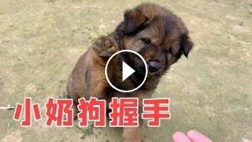 小奶狗学会握手了,简直太可爱了,萌萌哒!